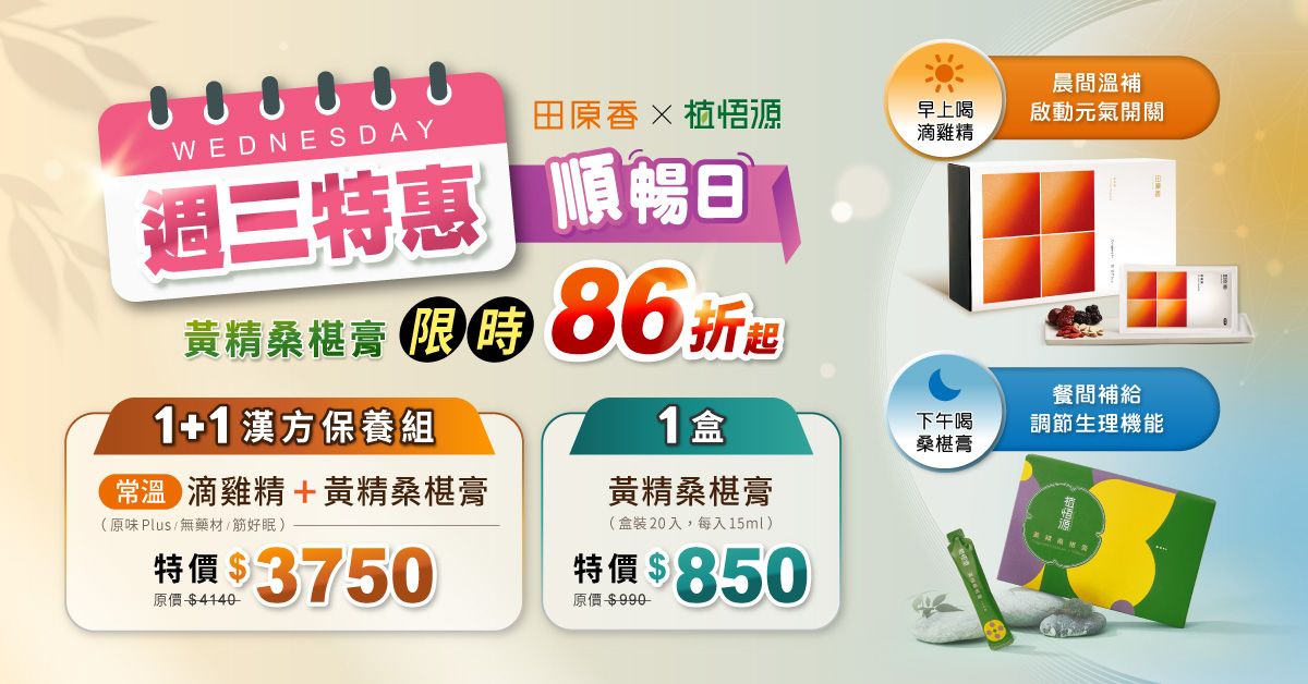 把握每週三限定特惠,輕鬆享受有感補養。