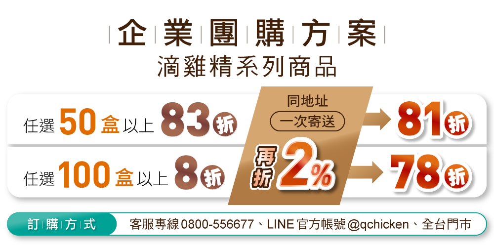 ▪訂購方式:0800556677、LINE官方帳號@qchicken、門市