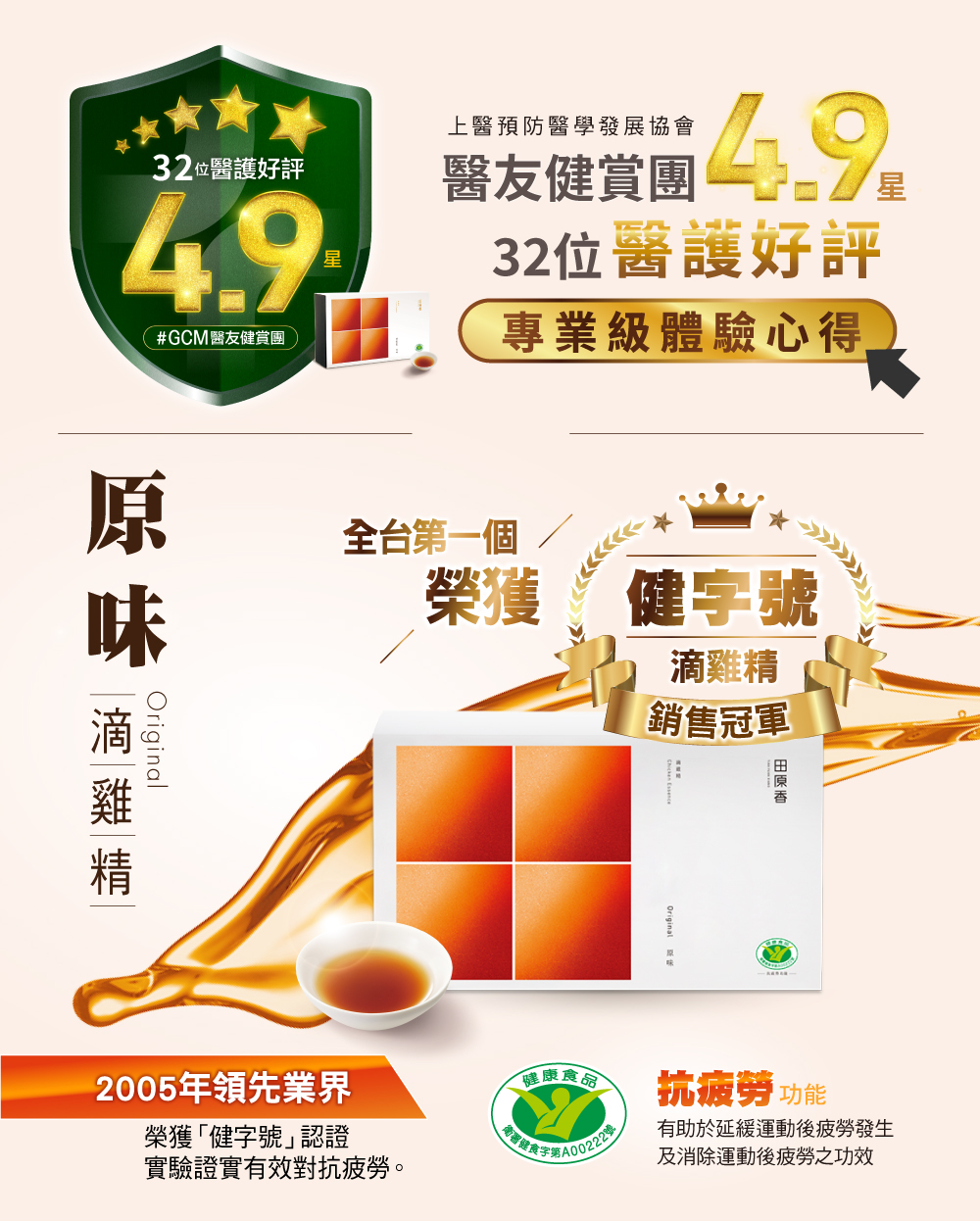 原味滴雞精一盒〔20包裝〕:每盒都用約自然雞全雞3.5隻的肉量進窯, 一盒分成20包,每包約60cc(約4分滿的一般飯碗的量) 。
